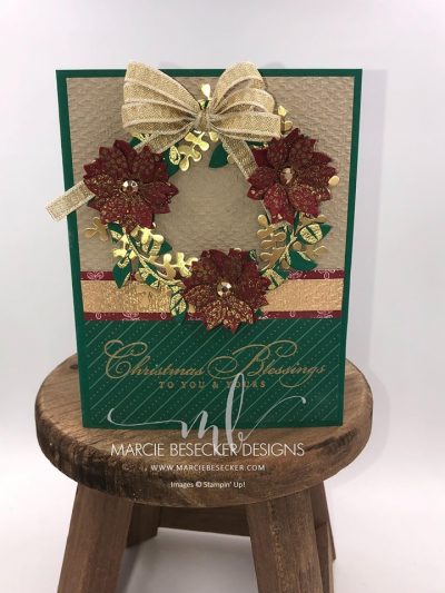 The Arrange a Wreath bundle is a great stamp set for a variety of different holidays. Today I created a fun Christmas poinsettia card using traditional colors.