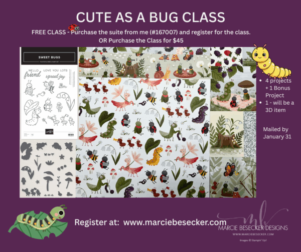 - FREE CLASS with Purchase – Purchase the suite from me (Cute as a Bug #167007) and register for the class. You will receive the kits, pdf and video link.
