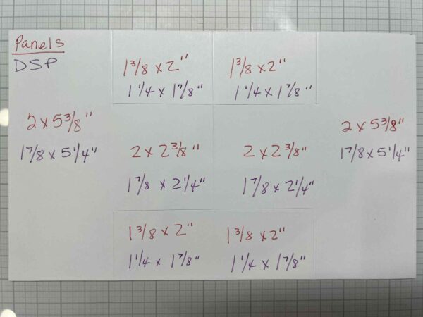Who doesn’t love a graphic. I decided to write the panel measurements right on the template pieces. This helps show where all of the sizes go. Notice I use two different colors of pen to decipher the different types of paper.