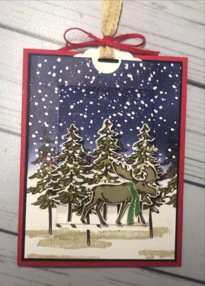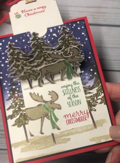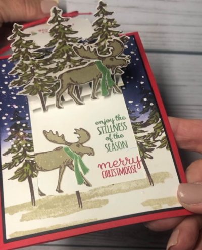 I hope you give this card a try. It is really fun and the pop-up feature is an extra special fun surprise. I really love the Merry Moose and In the Pine bundles together.